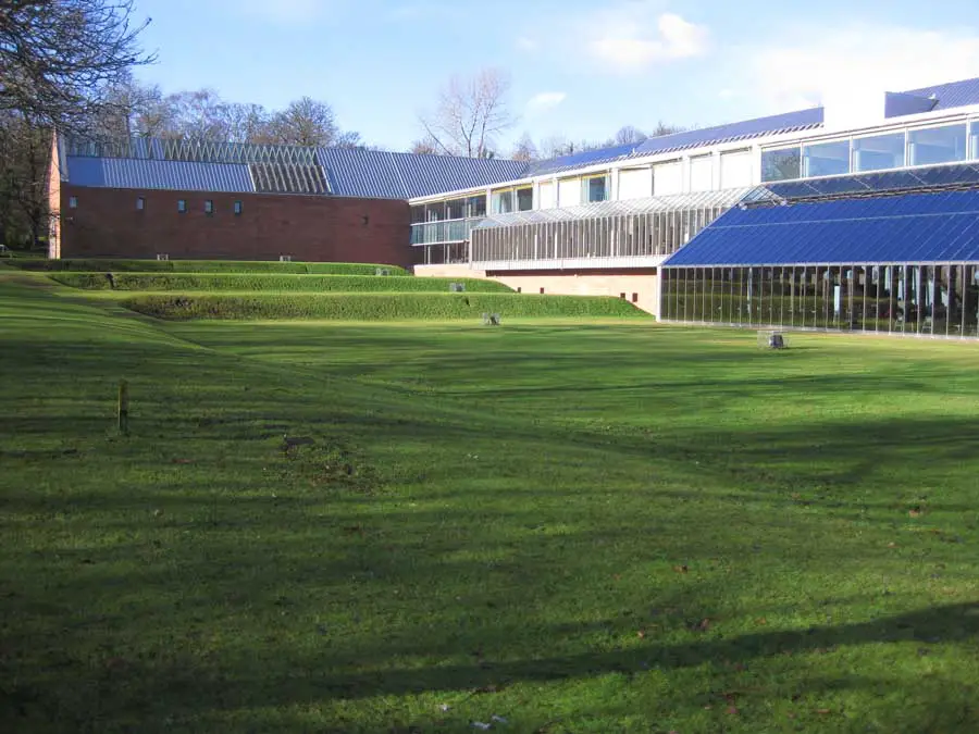 Exterior of The Burrell Collection, showing new entrance and landscaping: