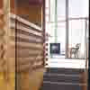 Although the original rooflines have been retained, the volume of the building has been maximised by the use of new steel portal frames. The ground floor is split in level, partly raised by half a storey to obtain both privacy and an enhanced outlook through a tall window to the park. Overlooking the sitting room and within earshot of the entrance, the staff workstations are located on an open oak-slatted gallery.